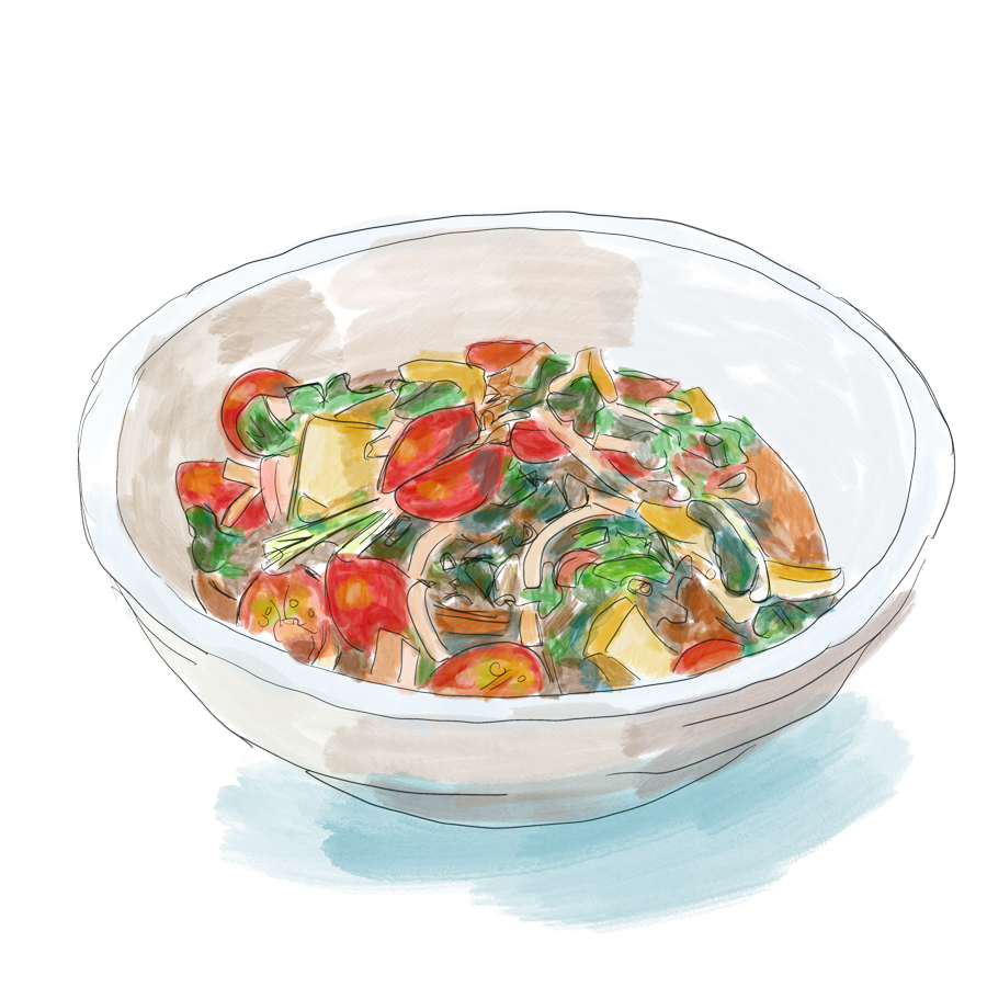 You can basically use any green vegetables in place of the kale mix, fresh or frozen. We had some left over pasta that we added after. I also think that half an avocado would be really good to add.
