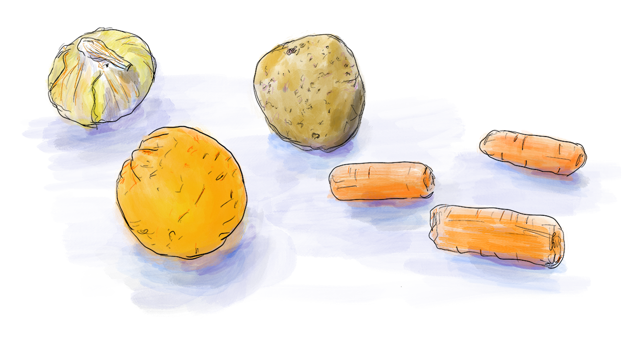 Fresh ginger adds a nice heat to this soup. If you like it spicier, add red pepper flakes after you serve it. The potato adds a nice smoothness to the texture.